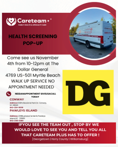 Join the Prevention Team of Careteam Plus at the Dollar General Health Screening Pop-Up Event!