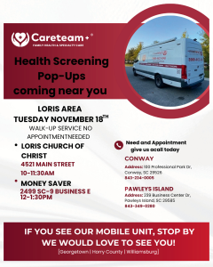 Money Saver parking lot -2499 SC-9 Business E, Loris, SC 29569 12-1:30pm