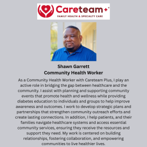 Come meet Shawn Garrett, our Community Health Worker, and say hello. He will be setting up a table during their lunch time feeding to the community. Learn about Careteam Plus services and what we offer. You can also meet our prevention team who will provide testing once a month.
