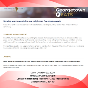 Location: Friendship Place Inc – 1423 Front Street Georgetown SC 29440